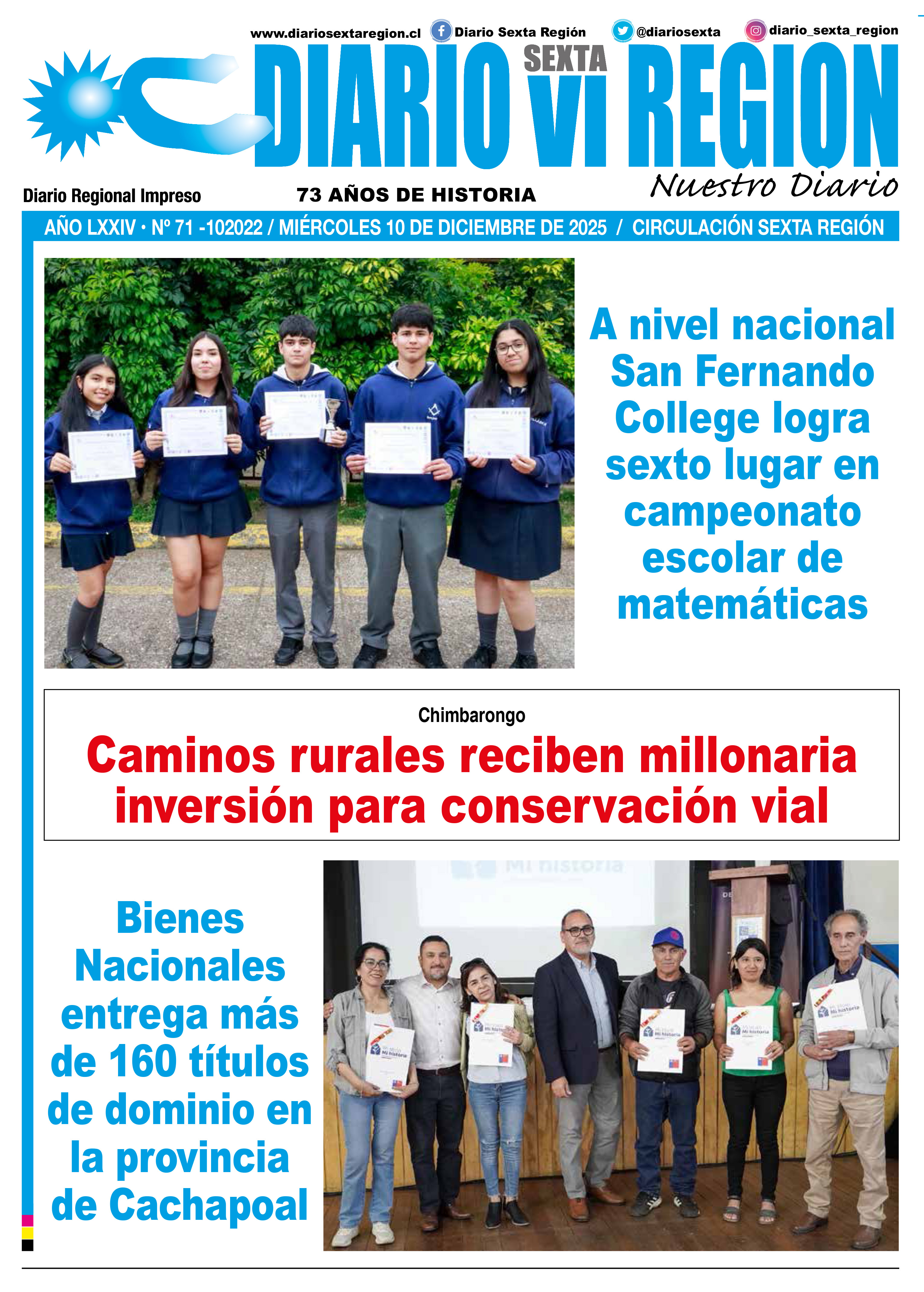 A raíz de un llamado anónimo, carabineros territoriales de la Primera Comisaría de San Fernando, logró la incautación de más de 600 plantas de marihuana elaborada, equivalente a más de un millón de dosis y avaluada en aproximadamente 5 mil millones de pesos y que iba ser comercializada en esta ciudad. En el operativo fueron detenidas en flagrancia 5 personas, todas con un amplio prontuario policial.