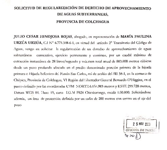 • Previous Article SOLICITUD DE APROVECHAMIENTO DE AGUAS SUBTERRANEAS PROVINCIA DE COLCHAGUA
