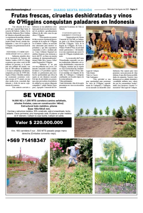 de Yakarta se desarrolló una exclusi- ofrece O’Higgins. SABORES Y CULTURAS