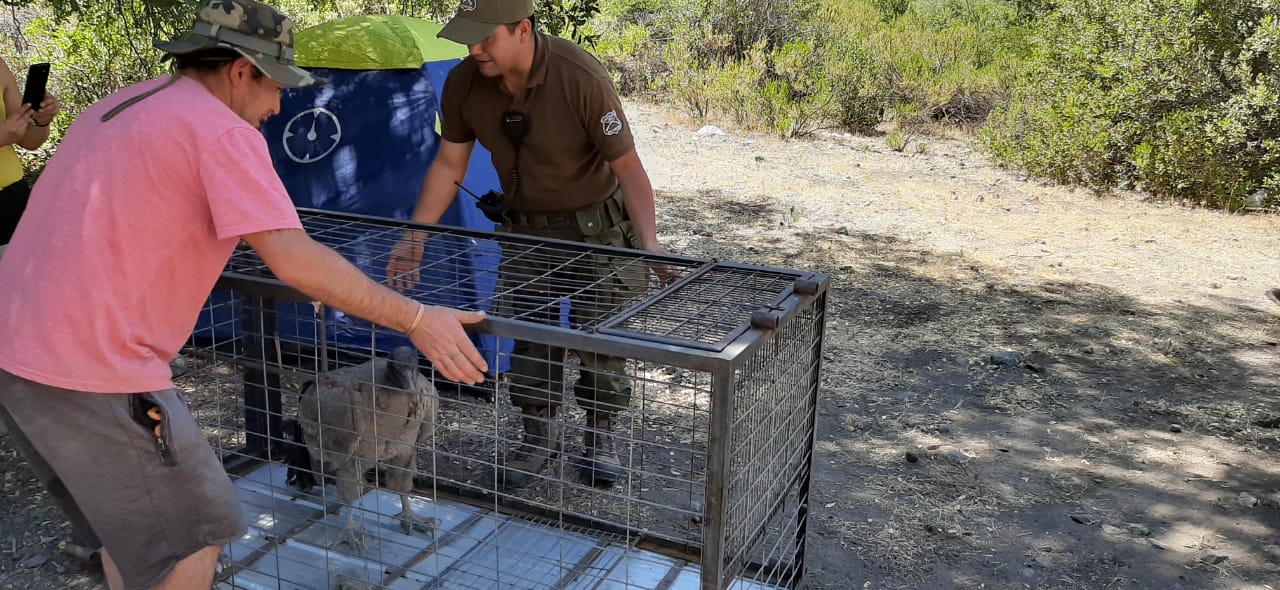 El oportuno aviso sobre la presencia de un cóndor juvenil en mal estado de salud, motivó la concurrencia de carabineros del Retén Pangal hasta el sector cordillerano de Las Leñas, logrando su recate.