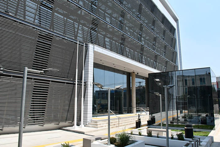 El nuevo Centro de Justicia cuenta con más de 15 mil metros cuadrados, está compuesto por 7 pisos en altura, un zócalo y tres subterráneos, tiene 19 salas de audiencia y trabajarán en el lugar más de 150 funcionarios judiciales.