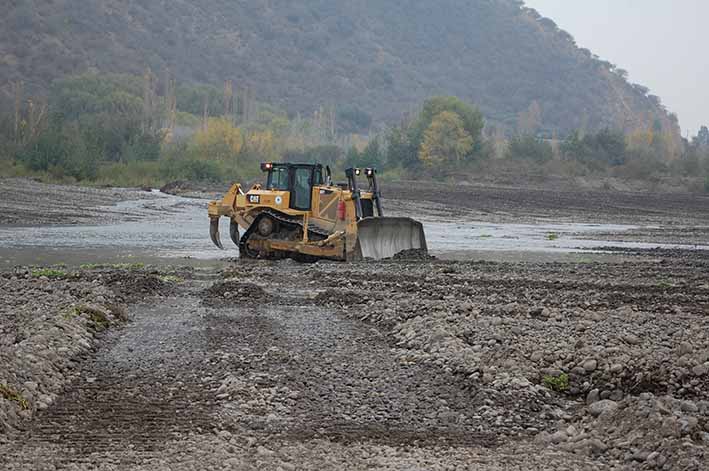 Considerando que ya desde hace unos años no se realizaba un mejoramiento del cauce en los alrededores del Puente Peumo, además de la intervención con extracciones de áridos en la zona, es que hoy se lleva a cabo un encauzamiento con Bulldózer Fiscal, que comprende un ordenamiento del cauce, despeje de embanque que obstaculicen el normal escurrimiento, y por otra parte reforzar las riberas para que el río escurra dentro de los límites establecidos como ribera actual.