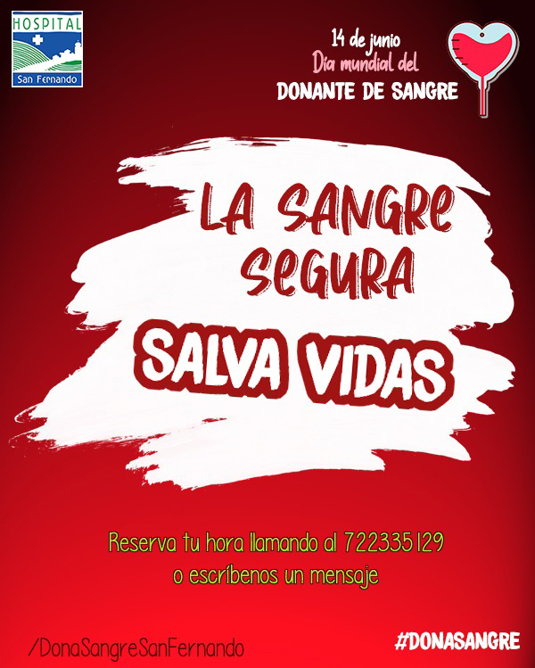 Este 14 de junio es el Día Mundial del Donante de Sangre y la Unidad de Medicina Transfusional de Hospital San Fernando te invita a realizar tu donación con las medidas sanitarias correspondientes.