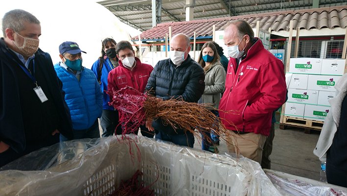El Ministro Antonio Walker realizó la visita a Nuevavid con diversas autoridades de la zona como el Seremi de Agricultura Joaquín Arriagada, el director regional de INDAP Juan Carol García, la directora de INIA Rayentué Sofía Felmer, y el alcalde de Malloa, Arturo Campos. Esto, con el propósito de conocer el trabajo del SAG para garantizar que se cumplan todas las acciones para el envío de los productos, y revisar las medidas sanitarias adicionales que se están tomando para el resguardo de los trabajadores y colaboradores en tiempos de pandemia. Todo, según los protocolos difundidos hace un tiempo por la Federación de Productores de Frutas de Chile junto con Achipia.