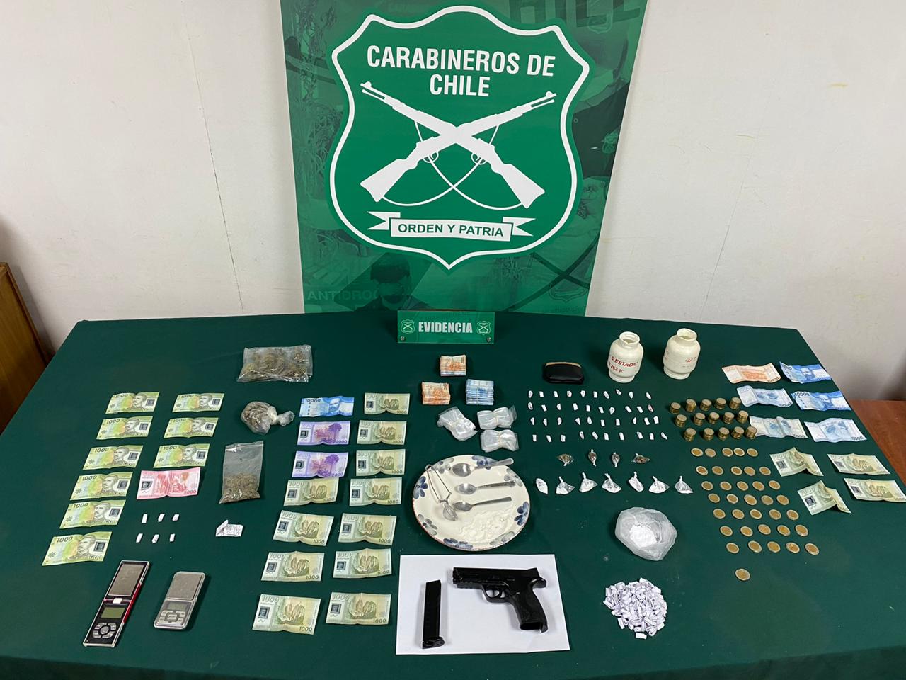 Asimismo se incautó desde la vivienda cerca de tres millones de pesos y algunos elementos para la dosificación de la droga.