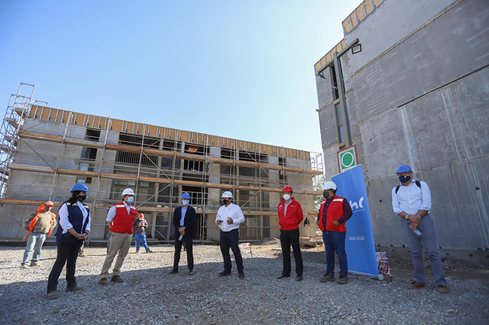 Posterior a esto se trasladaron junto al alcalde de Rancagua, Eduardo Soto y presidentes de comités a conocer la implementación de los protocolos sanitarios frente a Covid-19, en una obra, de inversión pública, condominio Valle Verde, emblemático conjunto habitacional DS19, con 11 torres que equivale a 184 departamentos, donde se desempeñan más de 200 trabajadores directos e indirectos, obra que no ha paralizado sus faenas, y no han tenido ningún contagio, en todo este tiempo de pandemia.