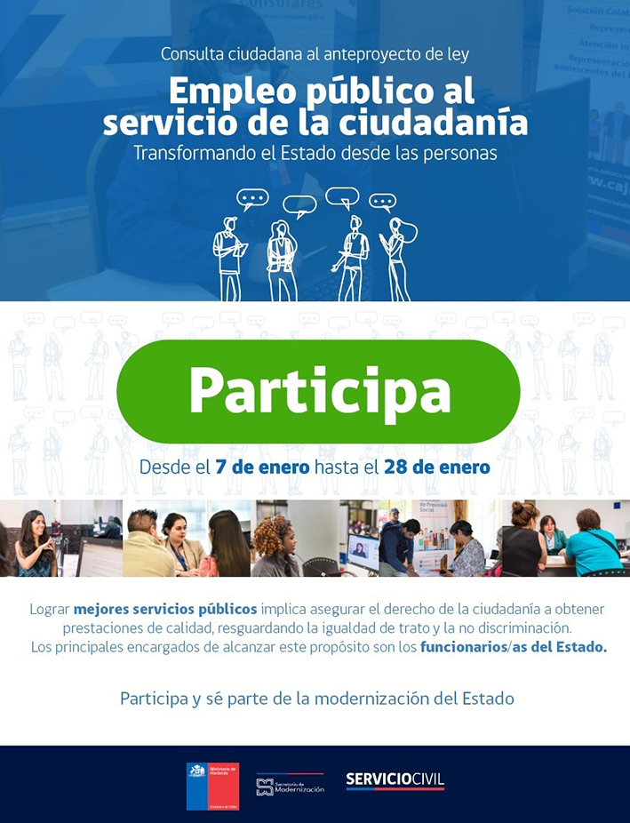 El anteproyecto de ley, sometido a consulta ciudadana, busca modernizar el empleo público para poner el Estado 100% al servicio de las personas y mejorar su calidad de vida.