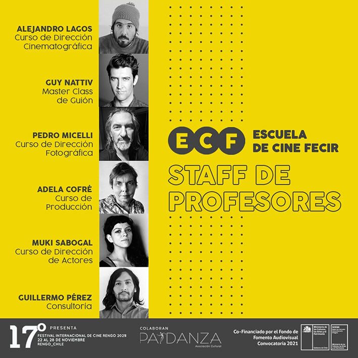Sobre los profesores que entregaran sus conocimientos, se buscó a los mejores docentes para que esta experiencia pueda ser algo importante para los estudiantes. Entre ellos destaca Guy Nativv, ganador de un premio Oscar el año 2019, Muki Sabogal, actriz peruana que ha trabajado en largometrajes y cortometrajes, Adela Cofré, con una larga trayectoria en el mundo de la producción de cine, y en películas como "Julio Comienza en Julio", Pedro Micelli, destacado cineasta dedicado principalmente a la cámara y dirección de fotografía, quien ha impartido sus conocimientos en diferentes escuelas de cine y universidades de Chile, Alejandro Lagos, director que ha desarrollado una carrera en cine y publicidad, y Guillermo Pérez, director de Festival Internacional de Cine de Rengo, cineasta que realizará consultoría e introducción al guión, quien ha realizado talleres de cine en diferentes lugares del país.