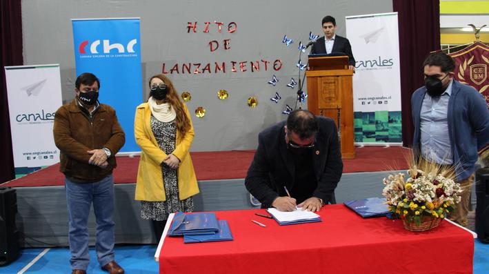 La propuesta, que ya tiene su versión en otras regiones del país como Los Lagos, Los Ríos, Aysén, Valparaíso y Coquimbo, se instaló en O’Higgins con la firma de un convenio de cooperación entre los liceos beneficiarios, la Cámara Chilena de la Construcción de Rancagua y la ONG Canales.
