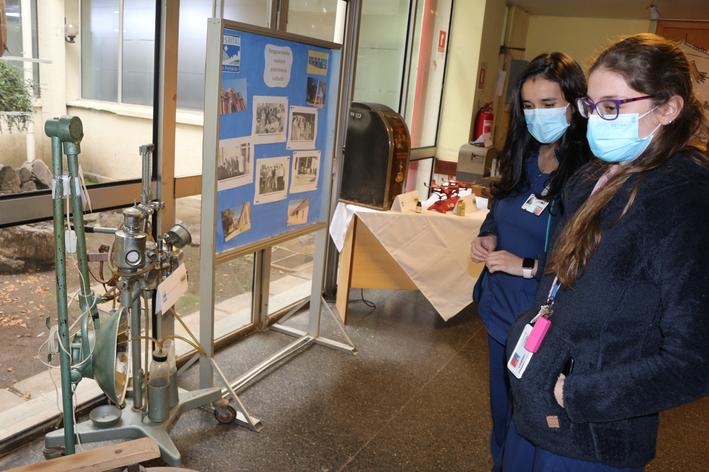 En ella, se expusieron diferentes implementos que estuvieron guardados por muchos años en el centro asistencial, como una máquina de anestesia, una lámpara quirúrgica, una silla de ruedas de madera, una máquina de escribir, entre otras, además de fotografías de funcionarios de las décadas de los 60 y 70.