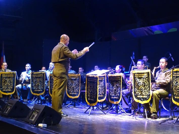 La actividad comenzó con un “Sweet a la Chilena” interpretada por los 28 oficiales que componen la Banda Instrumental de la Escuela de Carabineros de Chile. El repertorio fue variado, desde baladas de artistas hispanos clásicos como Camilo Sesto, Miguel Bosé, entre otras, canciones de Elvis Presley y Frank Sinatra musicalizadas, hasta rancheras interpretadas y caracterizada por uno de los funcionarios de la institución.