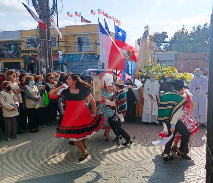 Ellos se dieron cita a las 16 horas en el frontis de la Parroquia Nuestra Señora del Carmen, ubicada en la Alameda. En el lugar junto con motivar a los presentes se bailó un pie de cueca en honor a la Virgen. El envío fue realizado por el Vicario General de la Diócesis, padre José Vergara y luego comenzó la procesión con la imagen de nuestra Madre, cuyo carro fue llevado por miembros de Ejército y fieles, en las distintas etapas del trayecto.