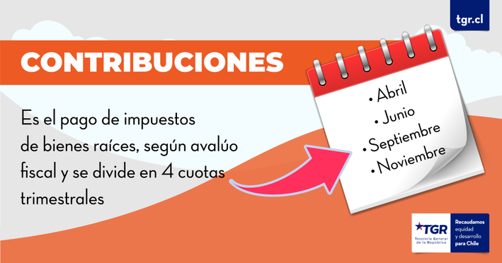 En el sitio tgr.cl ya se encuentra disponible el botón de pago de las cuotas de contribuciones. Las y los contribuyentes podrán pagar una cuota, las cuotas 1 y 2 de contribuciones, correspondientes a los dos primeros trimestres de 2023. O en su defecto, podrían hacer el pago total de las cuatro (4) cuotas sin ningún tipo de reajuste.