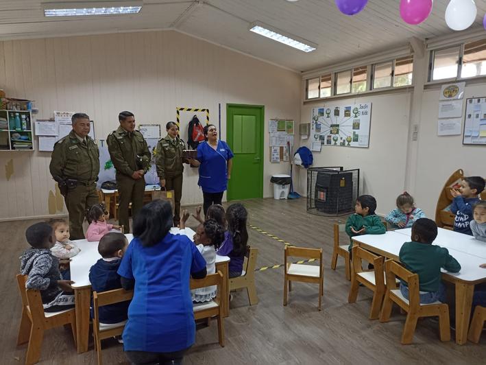 Además, Carabineros de la Oficina de Integración Comunitaria en compañía de Carabineros alumnos, visitaron el Jardín El Nido, donde recibieron una linda sorpresa, ya que los pequeños les cantaron el ‘Cumpleaños Feliz’ a los funcionarios policiales.