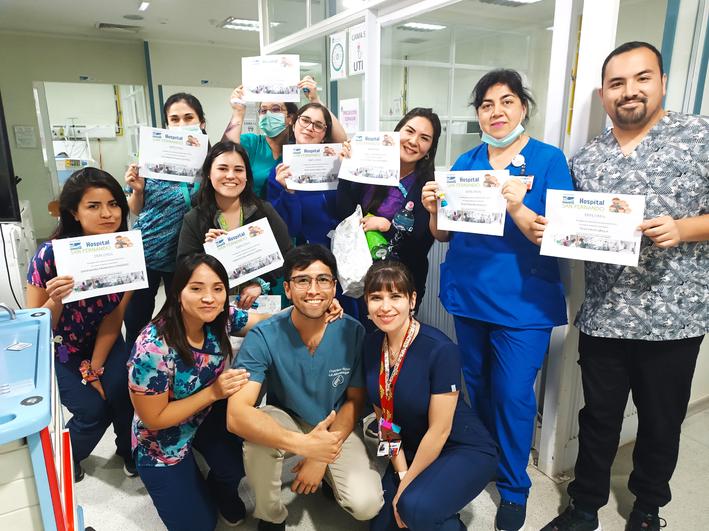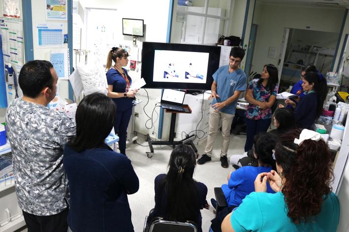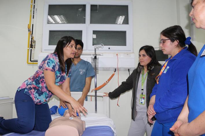La Unidad de Paciente Crítico del Hospital San Fernando se encuentra en un proceso constante y continuo de capacitación; en los últimos meses, sus equipos multidisciplinarios han participado del curso de reanimación cardiopulmonar, que estuvo a cargo de tres profesionales de dicha unidad: el kinesiólogo-docente Francisco Reyes, la enfermera especialista en cuidados intensivos Lisbeth Gaete y la enfermera-docente clínica Jesica Aro.