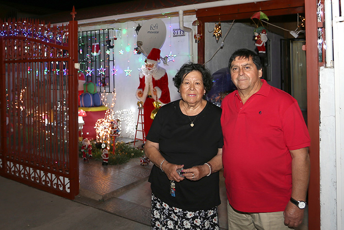 Al acercarse la Navidad, Rosa Mardones Palma y su esposo Guillermo Díaz Muñoz, se vuelven uno niños. Ambos, junto a sus hijos, se esmeran por decorar el antejardín y cada rincón de su casa de la Villa Centinela con luces, renos y viejos pascueros que roban sonrisas a los más pequeños y provocan una nostalgia infinita en aquellos que ya peinan canas.