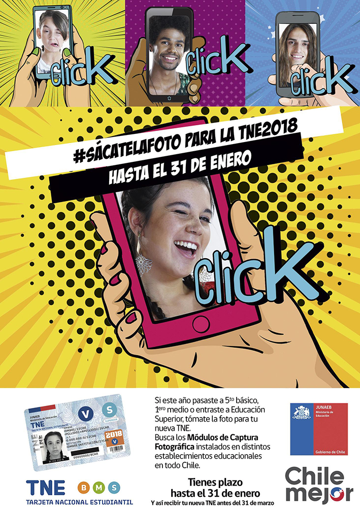 Hasta el próximo 31 de enero quienes ingresan a Educación Superior deberán tomarse la foto para su nueva Tarjeta Nacional Estudiantil. De esta manera, los estudiantes podrán obtener la TNE del nuevo nivel educacional que cursarán el 2018, antes del 31 de marzo.