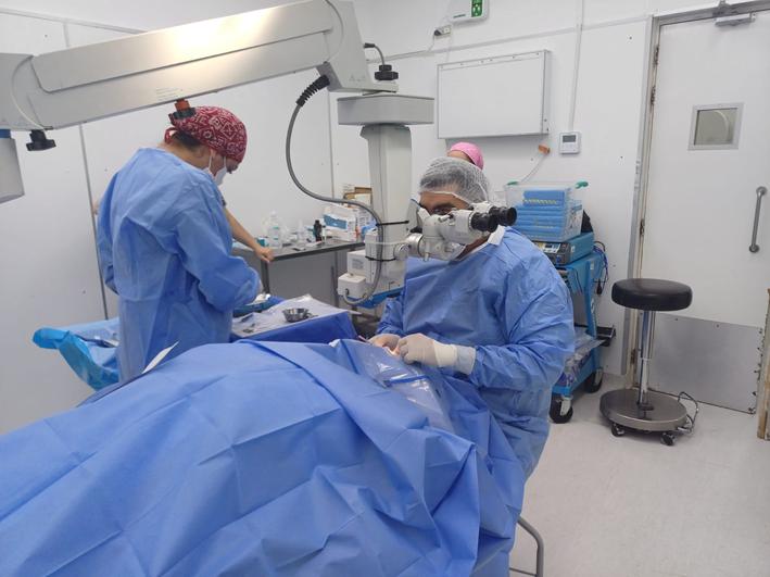 El equipo clínico de CAPREDENA, compuesto por oftalmólogos, un anestesista, técnicos en anestesia, arsenaleras, pabelloneras y enfermeras, trabajó simultáneamente en dos pabellones del Hospital de Rengo. Además del recurso humano, CAPREDENA aporta instrumental quirúrgico, insumos médicos y un microscopio de alta precisión.