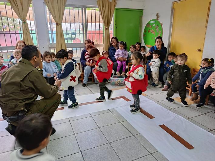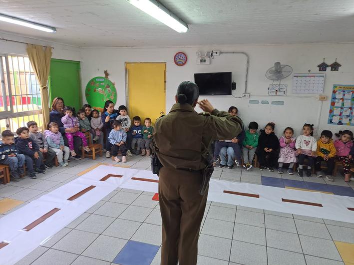 Los delegados de cuadrante en conjunto con personal de la Segunda Comisaría de Santa Cruz, realizaron una actividad práctica de las señales de tránsito a la comunidad infantil del jardín Alerce de esta ciudad.