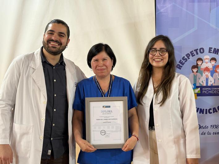 Entre los homenajeados estuvo Teresa Díaz, TENS de la Unidad de Laboratorio, quien cumplió 40 años de servicio en el hospital. “Fue un momento muy emocionante —expresó—. No todos los que trabajamos en salud podemos contar una historia tan larga. Son muchos recuerdos, algunos felices y otros difíciles, pero siempre guardaré en mi corazón a las personas maravillosas que he conocido en este camino. Agradezco profundamente este gesto, que representa años de esfuerzo y compromiso con mi labor en el Hospital de Pichidegua”.