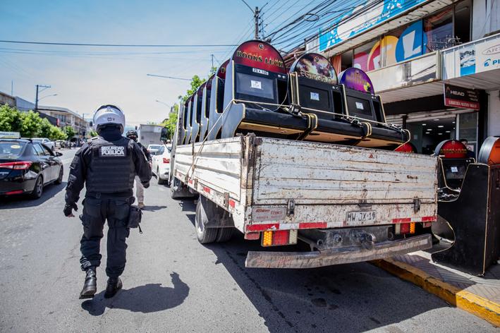 Durante toda la jornada del martes, se llevó a cabo un amplio operativo conjunto entre la PDI, el Ministerio Público y la Municipalidad de San Fernando, que permitió la clausura de nueve casinos de juegos ubicados en el centro de la comuna y la incautación de la totalidad de sus máquinas.