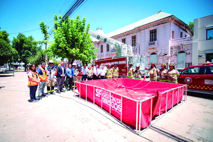 En este contexto, el alcalde Pablo Silva Pérez y el comandante del Cuerpo de Bomberos de San Fernando, Juan Cornejo, encabezaron una breve ceremonia en la que el municipio hizo entrega, en calidad de comodato, de una piscina con capacidad cercana a los 10 mil litros de agua, destinada a apoyar el trabajo estructural de Bomberos.