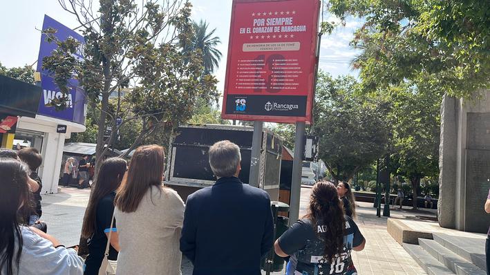 Como parte de un acto de memoria y respeto, el municipio de Rancagua instaló una serie de pancartas conmemorativas en el Paseo Independencia, en el centro de la ciudad, para rendir homenaje a los 16 hinchas de O’Higgins que fallecieron en la tragedia de Tomé en 2013.