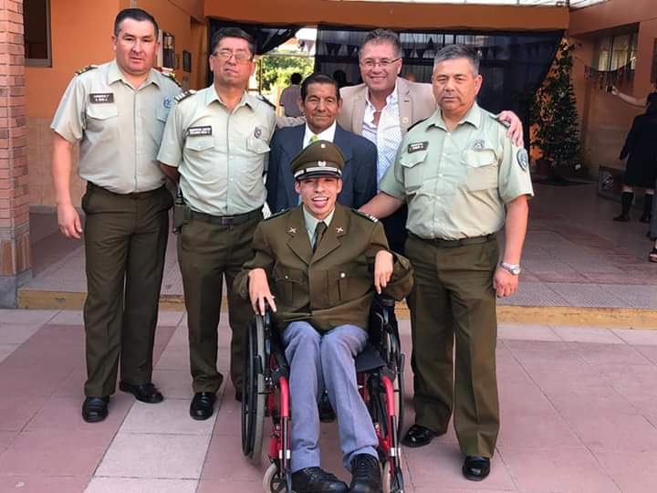 En dependencias de la Escuela Especial de Santa Cruz, personal de la Patrulla Comunitaria compuesta por Suboficial Mayor, Ricardo Silva Torres, Suboficial, Víctor Torres Grandon y el Sargento 1ro. Heriberto Silva Álvarez de la Segunda Comisaria Santa Cruz, ante la petición de la dirección del establecimiento educacional, acompañaron a Jonathan Aceituno en su ceremonia de graduación vestido del verde uniforme.