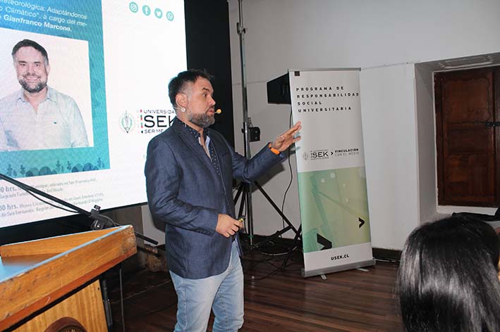 Como una forma de generar conciencia sobre la comunidad sobre los desafíos climáticos y sociales del calentamiento global, la Universidad SEK en conjunto con la Agencia de Sustentabilidad y Cambio Climático realizó una charla Cultura Meteorológica: "Adaptándonos al Cambio Climático", presentada por el meteorólogo Gianfranco Marcone, en el museo Lircunlauta de San Fernando.