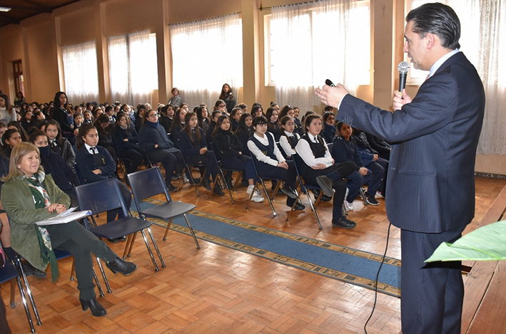 Más de doscientas cincuenta alumnas de sexto y séptimo básicos del Colegio República Argentina asistieron a la charla que dictó el presidente de la Corte de Apelaciones de Rancagua, Pedro Caro, en una actividad que se dio en el marco del aniversario 51 del tribunal de alzada.
