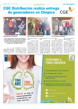 monofásicos al municipio de Chépica. Distribución y Rebeca para nuestros vecinos. Es- continuar ejecutando el 100 generadores monofá-