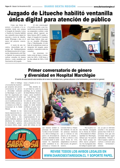 WWW.DIARIOSEXTAREGION.CL Y SOPORTE PAPEL