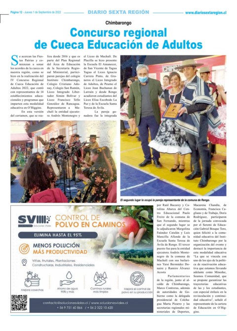 Página 12 - Jueves 1 de Septiembre de 2022 www.diariosextaregion.cl