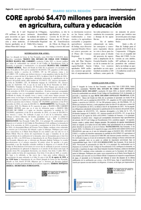 por avisos de conformidad con art culo 54 del C digo de Procedimiento Civil, la Regional. del proyecto de reposi- Pleno del CORE. La in-