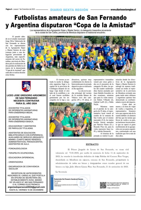 bienes a su hijo, Julio Alberto Lizana Pino. San Fernando, 21 de noviembre de 2023.