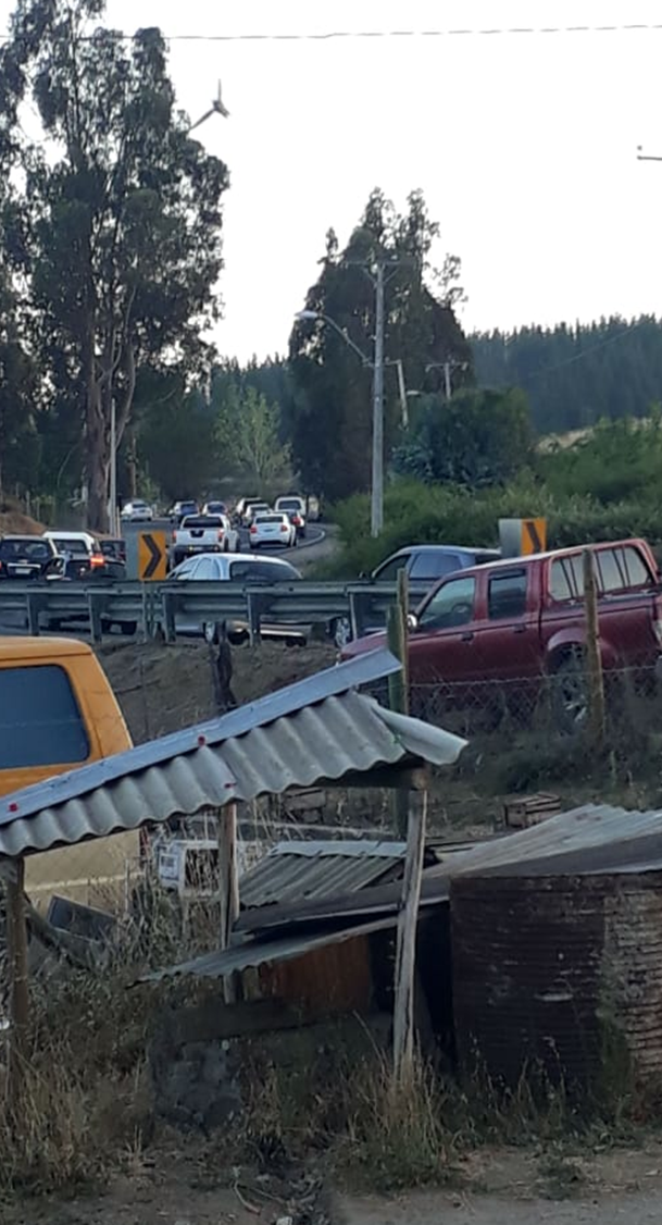 Por esta razón unas 150 personas decidieron bloquear la Ruta 90 impidiendo de esta manera el normal desplazamiento vehicular provocando largas columnas especialmente de turistas que retornaban desde la playa de Pichilemu en dirección a Santa Cruz, San Fernando, Rancagua y Santiago.