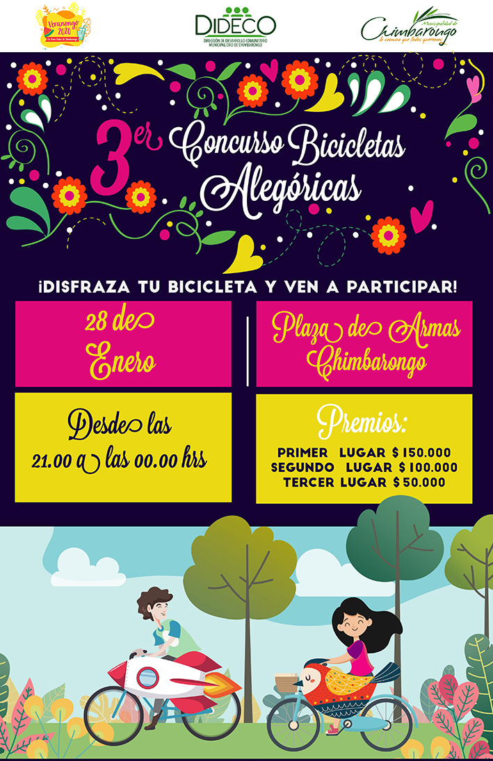Ya se está viviendo la fiesta del Veranongo en Chimbarongo, donde habrá más de un mes de actividades programadas para que la familia de la comuna pueda disfrutar. Una de ellas, es el concurso de bicicletas alegóricas, que llenará de color la Plaza de Armas hoy martes 28 de enero desde las 21 horas.