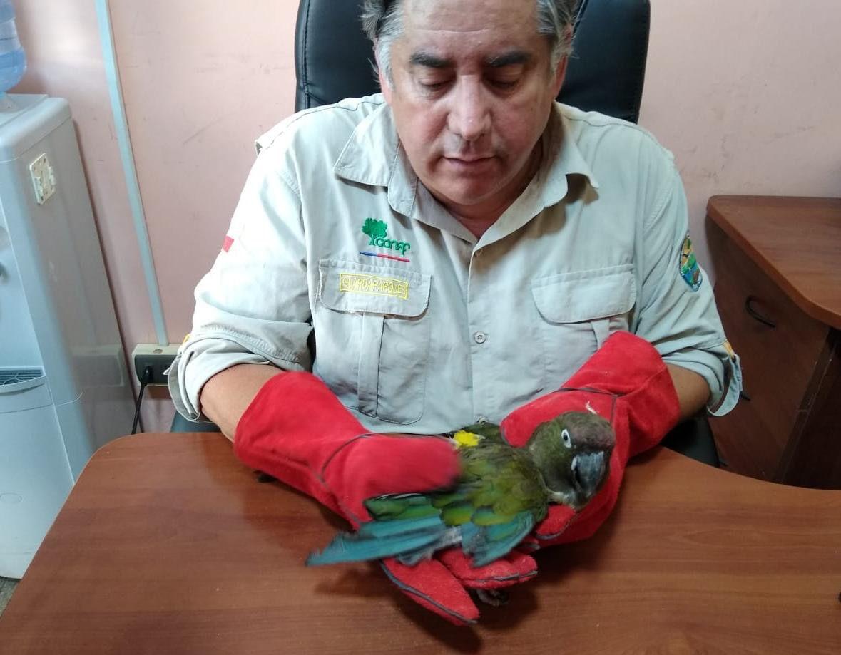 El pequeño animal fue encontrado con un ala ensangrentada, por lo que los vecinos procedieron a su captura, en conjunto con el apoyo del personal de la Reserva Nacional Roblería del Cobre de Loncha. Gracias a esto, el administrador del área protegida, Julio César Vergara, pudo examinar al loro, constatando el daño del ala derecha