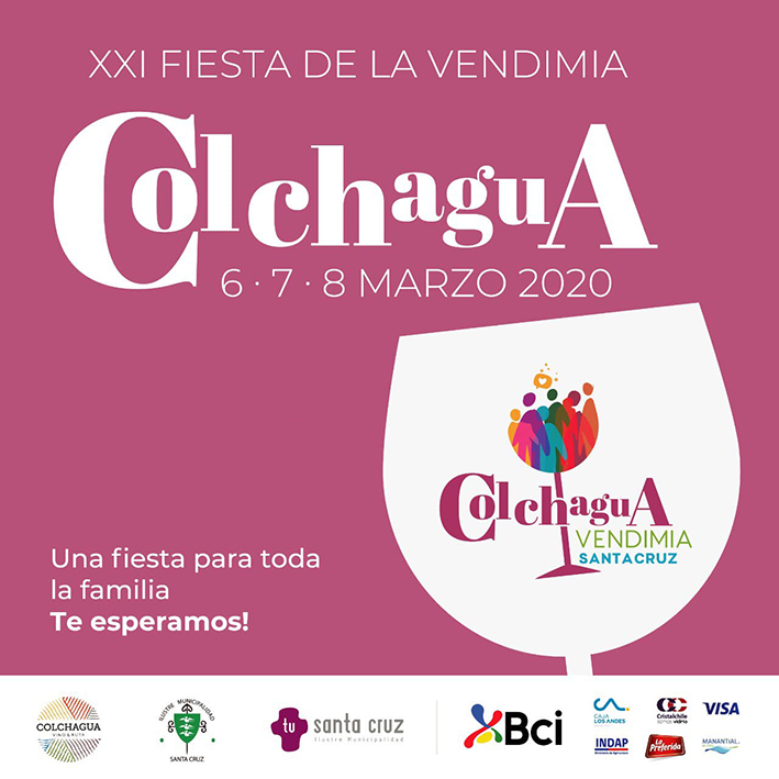 La Municipalidad de Santa Cruz junto a la Asociación de Viñas de Colchagua y las 21 viñas participantes invitan a disfrutar de esta vendimia 2020, la cual es catalogada como nuestra vendimia con fin social del cual apoya y brinda oportunidades a muchos micro emprendedores que ven en esta fiesta una posibilidad de salir adelante./