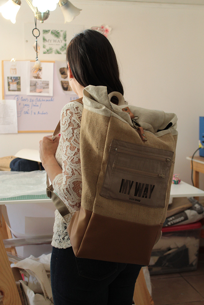 Bolsas para alimento de mascotas, textiles en descarte combinados con yute orgánico y un toque de diseño dan vida a "My Way Eco Bag". Una línea de bolsos y mochilas creados por Juliana Mierez, con materiales reciclados y que apuntan hacia una economía circular. Esta emprendedora de nacionalidad argentina y radicada en Machalí cuenta que, en 2016 surgió la iniciativa a raíz de la problemática producida por la contaminación ambiental y por la entrada en vigencia de la Ley 21.100 que prohíbe la entrega de bolsas plásticas en el comercio.