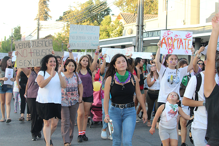 En San Fernando, se estima que más de mil 500 mujeres salieron a las calles a manifestarse por sus derechos. La jornada en la capital de la provincia de Colchagua se desarrolló con absoluta normalidad de acuerdo al informe de carabineros. Una de las asistentes Adriana Rodríguez Núñez, se mostró conforme y satisfecha por los resultados que tuvo la movilización. "Estamos felices especialmente por la excelente convocatoria que fue superior a la del año pasado con más de mil personas apoyando. Fue maravilloso y emocionante ver a tantas mujeres caminando por las calles luchando por sus derechos", argumentó.