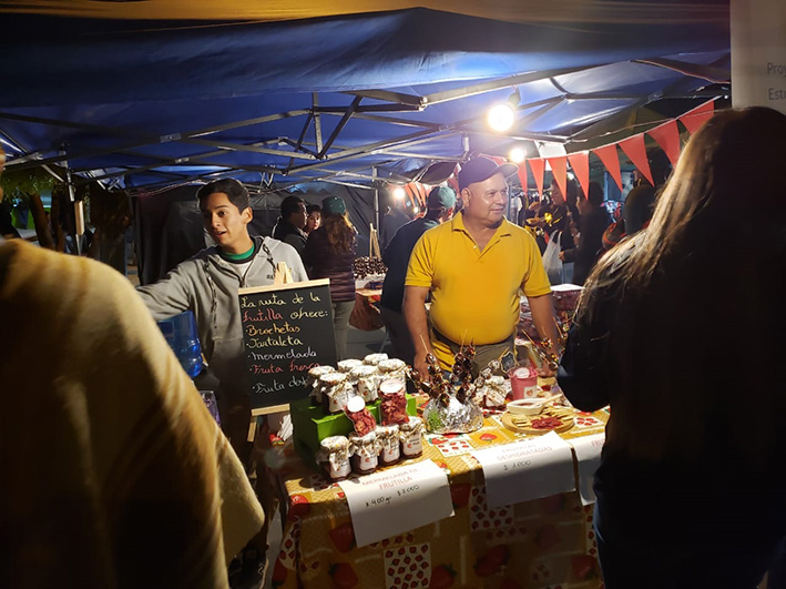 Con dos stands ubicados en las afueras de la Municipalidad de Litueche se hicieron presentes los agricultores de frutillas del secano costero en el carnaval de la localidad. Durante tres días los beneficiarios ofrecieron subproductos del fruto que cultivan en distintas presentaciones, como frutillas deshidratadas, en mermelada, tartas o cubiertas de chocolate.