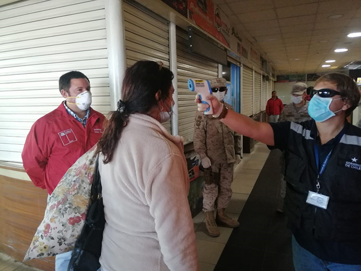 La nueva medida para prevenir la propagación del Coronavirus (Covid-19) debutó durante la mañana de este miércoles en las dependencias del Terminal O'Higgins con el control de los pasajeros que llegaban desde Santiago y otras comunas de la región, principalmente. En tanto, por la tarde, los equipos de la Seremi de Salud junto a efectivos de Carabineros y Ejercito se trasladaron al Terminal Rural Rodoviario para levantar los chequeos de mediciones de temperatura y controles de identidad a los usuarios de los servicios de transporte público que funcionan en dicho terminal.