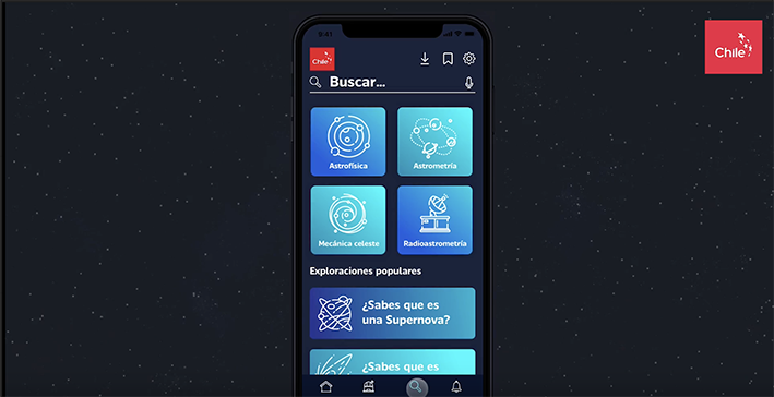 En este espacio podrás navegar a través del universo con cientos de imágenes reales y fascinantes. Estrellas, nebulosas, galaxias y más estarán al alcance del usuario quien, junto con maravillarse con ellas, aprenderá a distinguir y caracterizar estos fenómenos, además de escuchar el expertise de destacados astrónomos chilenos, Imagen de Chile contó con el apoyo de diversas instituciones de gran prestigio internacional para desarrollar la plataforma, entre ellas European Southern Observatory (ESO), Atacama Large Millimeter/submillimeter Array (ALMA) y CATA, entre otros.
