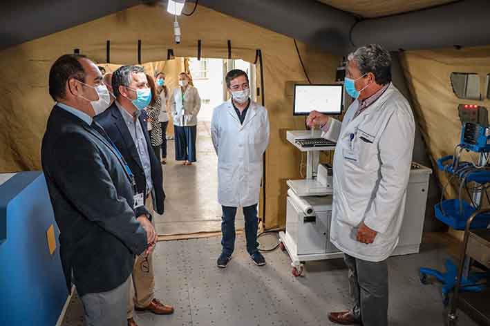 La visita al establecimiento se concentró en parte en la revisión del servicio de urgencia, dirigido por el Dr. Juan Pablo González, quien expresó que "Hemos mostrado al Intendente toda la preparación que se ha hecho desde hace bastante tiempo para enfrentar la pandemia, incluyendo todas las áreas que abrimos para darle más capacidad a Urgencia, incluyendo las carpas que visitamos y que nos permiten aumentar los cupos de 30 a 70 y 90 cuando sea necesario, cuando aumente la demanda en el servicio. Además de eso le mostramos los equipos que tenemos a disposición para tratar a los pacientes que llegan con insuficiencia respiratoria grave".