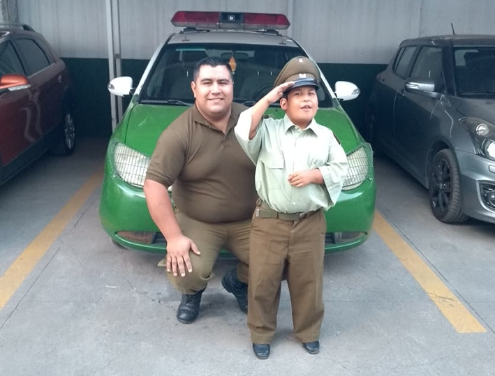 El pequeño llegó al cuartel vistiendo el uniforme de carabineros, donde fue recibido por los funcionarios quienes lo invitaron a efectuar un recorrido por el cuartel policial y conocer el trabajo diario que realiza el personal de ese destacamento de la Prefectura Cachapoal.
