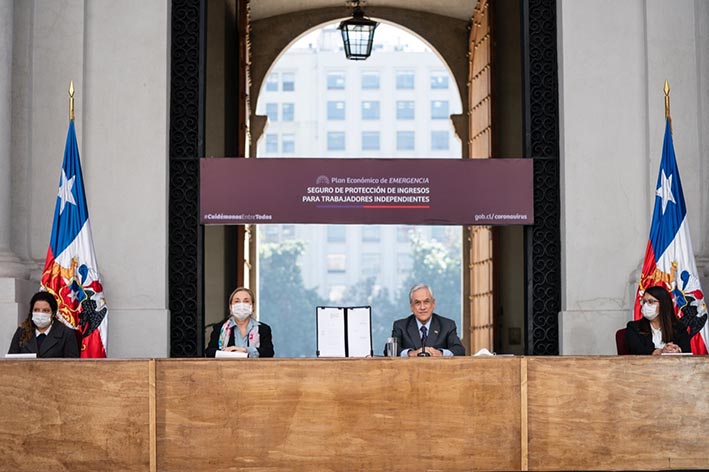 Entre las iniciativas se encuentran la Ley de Protección al Empleo, que protegerá a 4,7 millones de trabajadores permitiéndoles acceder a los beneficios del seguro de cesantía en distintas circunstancias e impidiendo los despidos por fuerza mayor; el ingreso familiar de emergencia, para hasta 4,5 millones de personas; el Bono Covid-19, que se comenzó a pagar a más de 2,7 millones de chilenos; y un impulso al crédito con condiciones preferenciales por US$24.000 millones para financiar capital de trabajo para el 99,8% de las empresas de Chile.