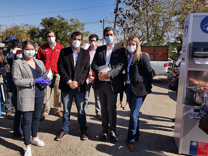 Hasta la Feria Taitao en Estación Central llegó la Directora Nacional de Sercotec Carolina Undurraga, junto con el Subsecretario de Agricultura, José Ignacio Pinochet, el Alcalde de Estación Central, Rodrigo Delgado y Secretaria Ejecutiva de Elige Vivir Sano Daniela Godoy, para lanzar el Programa Kit de Sanitización de Sercotec. Esta iniciativa, enfocada al cuidado de los comerciantes de ferias libres y sus clientes, contempla la postulación a un kit de productos que contiene mascarillas y guantes, así como también lavamanos portátiles para el aseo de manos en el espacio de la feria.