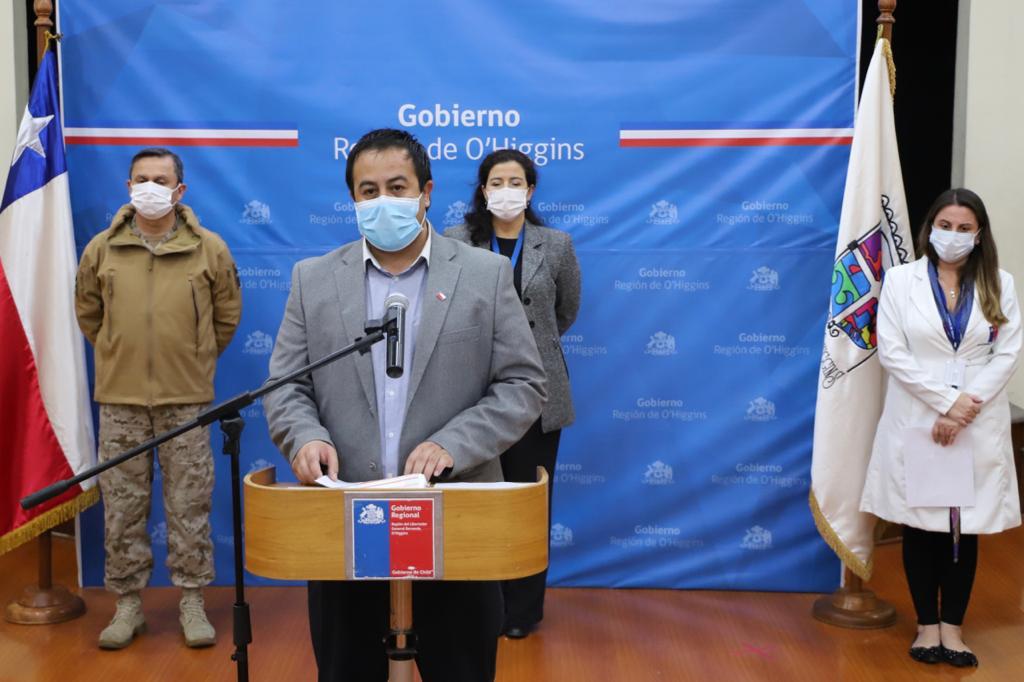 Cinco nuevos casos de Covid-19 hay en la región, con lo cual la cifra oficial de contagios en O’Higgins es de 122 personas. Así lo informó en esta jornada de domingo 3 de mayo el Gobernador de Cachapoal, Felipe Uribe Estela, quien en esta oportunidad estuvo acompañado de la Seremi de Salud, Dra. Daniela Zavando; del Jefe de la Defensa Nacional en O’Higgins, General Jorge Jacque, y de la Dra. Alejandra Reyes, Subdirectora Médica del Servicio de Salud O’Higgins.