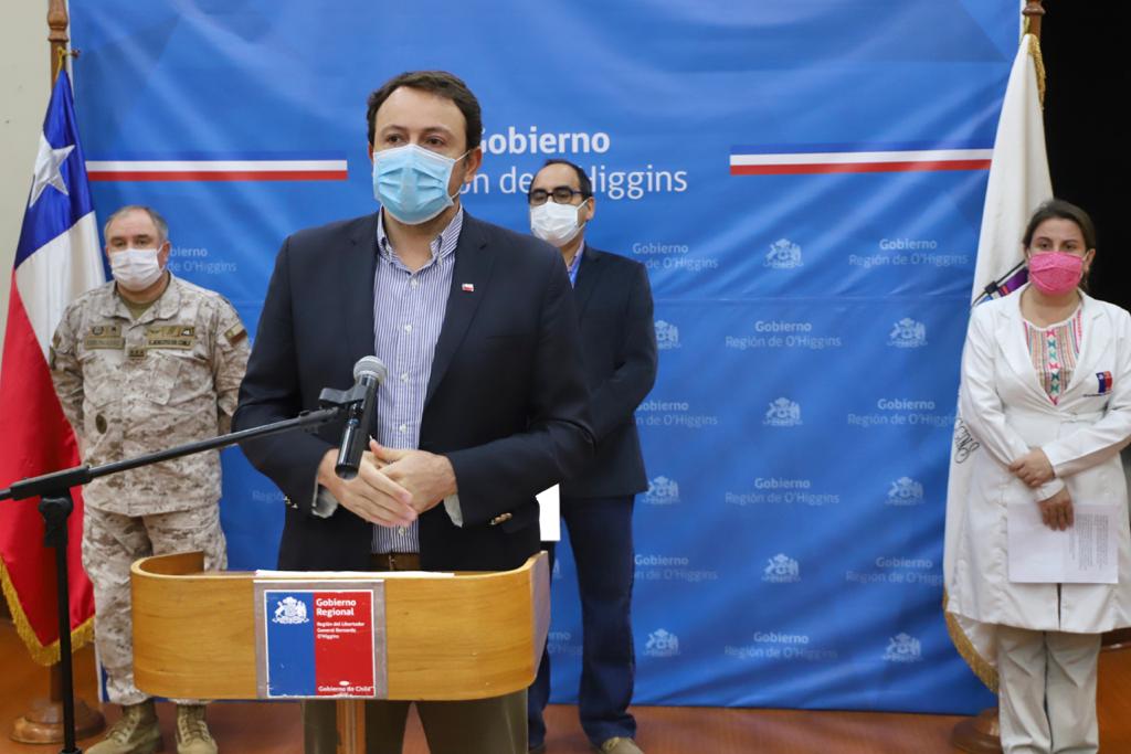 Seis nuevos casos de Covid presentó este sábado la región de O’Higgins, con lo cual la región queda con 329 casos totales acumulados. Así lo informó el Gobernador de Colchagua, Yamil Ethit, quien en la vocería oficial estuvo acompañado por la Seremi de Salud, Daniela Zavando; el Jefe de Estado Mayor de la Defensa Nacional de O’Higgins, Coronel Patricio Amengual; el Director del Servicio de Salud O’Higgins, Fabio López.
